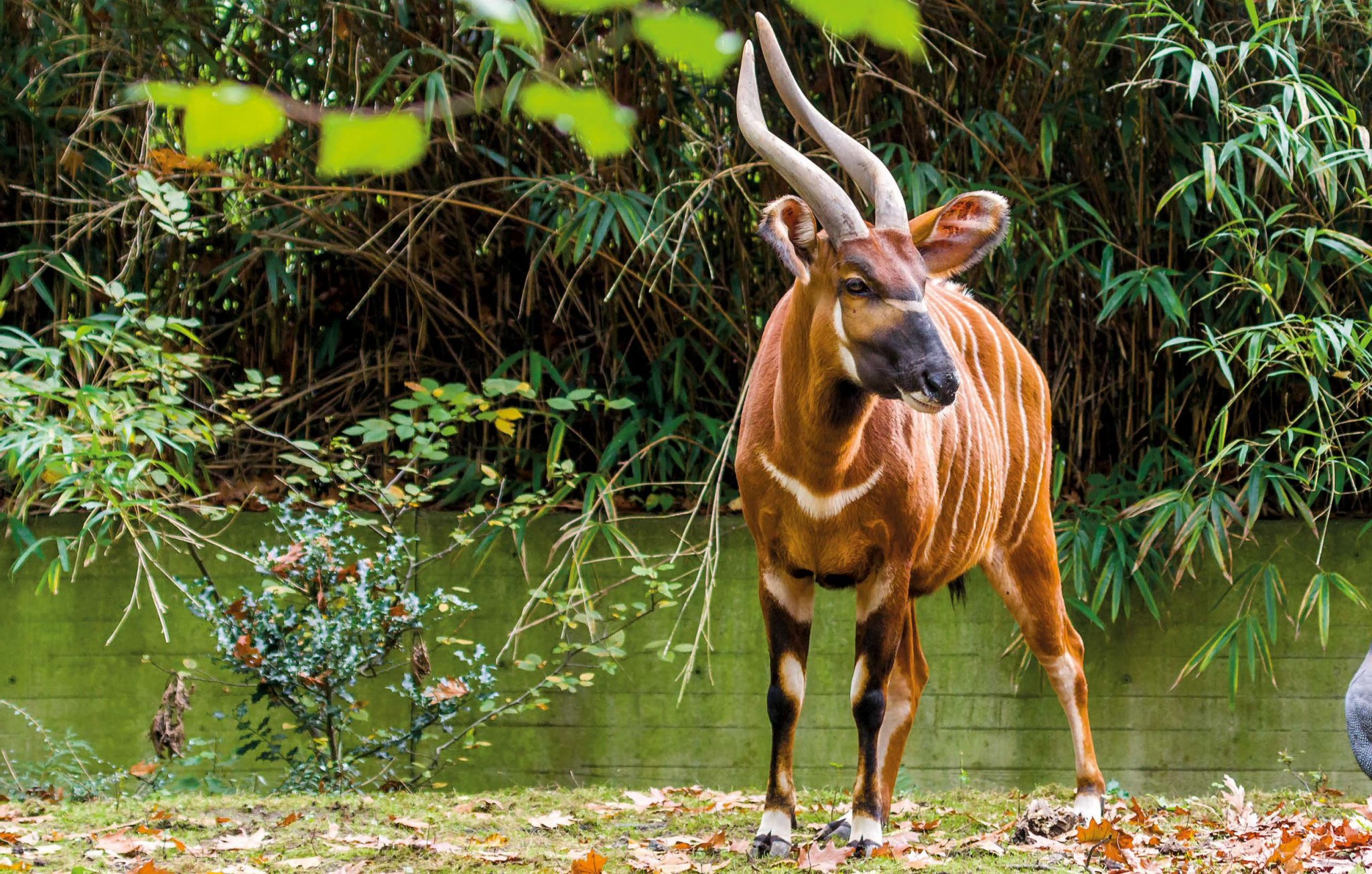 Антилопу бонго никогда не увидеть на открытой местности. Только среди густых деревьев и в зарослях высоких кустарников она чувствует себя в безопасности.