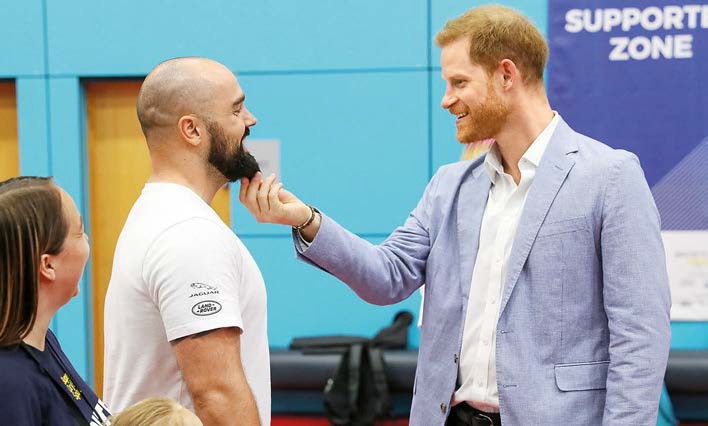 Джиган, на его месте мог бы быть ты! А пока своей бородой на принца Гарри произвел впечатление футболист Джонатан Митчелл. Его команда принимает участие в ежегодных спортивных состязаниях для солдат-инвалидов, которые и посетил Герцог Сассекский. У самого наследника престола растительность не столь густая, поэтому понятно, чем он поинтересовался у атлета.