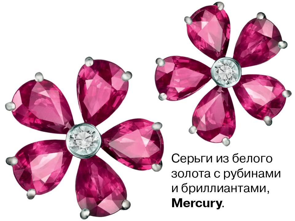 Свежие ростки дала коллекция Color ювелирного бренда Mercury — в ней распустились рубиновые и сапфировые бутоны. Лепестки скреплены белым золотом, в центре у них — бриллианты. Из таких колец, серег и подвесок можно составить целый сад.