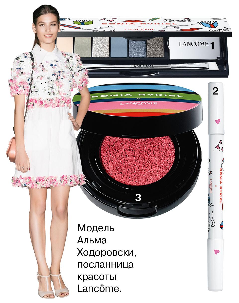 Поддаюсь массовому «рикелизму». Крашу ногти в красно-сине-зеленую полоску, щечки-яблочки превращаю в клубнички, а на веках к любимому хаки подмешиваю серый цвет. Мудреный термин в мой лексикон ввела марка Lancôme, удивившая очередной коллаборацией с модным Домом. Вслед за Альбером Эльбазом, Энтони Ваккарелло и Джейсоном Ву за дело взялась креативный директор Sonia Rykiel Жюли де Либран. И так задорно разрисовала упаковки фирменными принтами и символами богемного Сен-Жермен, что впору делать пометку «беречь от детей». Внутренним наполнением занялась креативный директор по макияжу Lancôme Лиза Элдридж: она собрала палитры для дневных и вечерних smoky eyes и утопила румяна в кушоне.