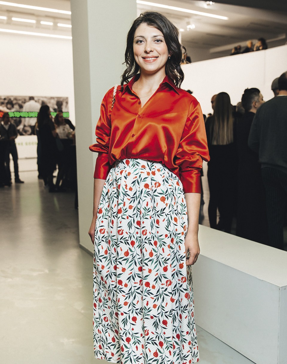 Летом половина Москвы ездила к Айдан в Каррару — смотреть, как она шлифует Пьету. Ради юбилейной вечеринки «Гаража» скульптор сама выбралась в Москву, где вступила в битву светоотражающих плащей с Ольгой Свибловой.