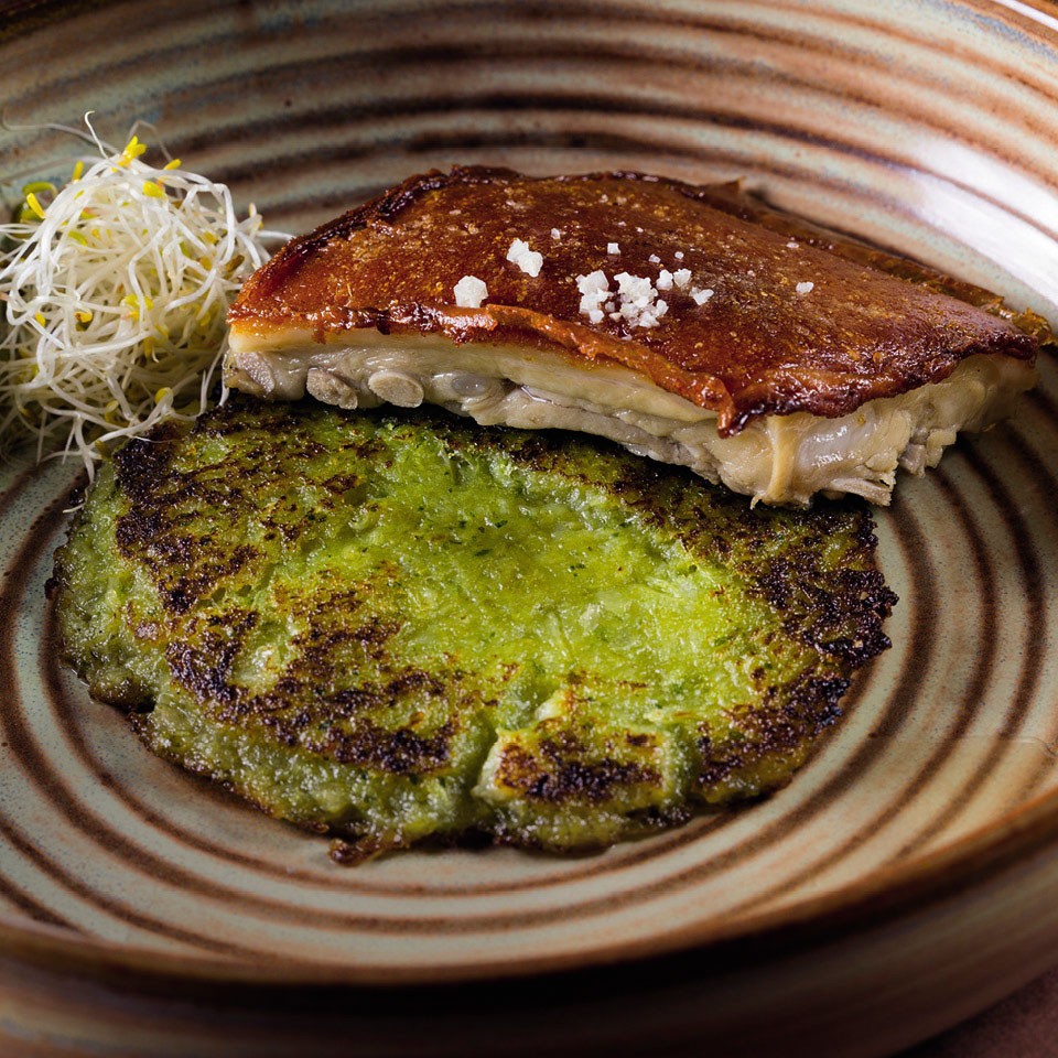 Шеф Etxebarri Виктор Аргинсонис готовит только сам и исключительно на углях. Его небольшая кухня похожа на ад в его канонических описаниях: огонь, немыслимая жара, разве что чанов с расплавленной смолой не хватает. В двух печах с раннего утра готовятся угли — шефу для каждого из блюд требуется строго определенная температура, а потому на угли идут разные дрова. На гриле готовится все. И крохотный горох (за размер его тут называют «слезами» или «зеленой икрой»). И кокочас — деликатесная часть нижней челюсти хека или трески. И красные креветки, доставляемые из каталонского Паламоса. И та самая икра, которую до Виктора никто не пытался не только жарить на гриле, но и вообще подвергать термической обработке.