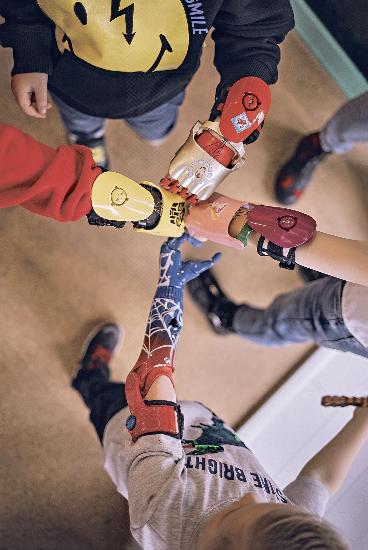 Компания «Моторика» уже давно превратилась из стартапа в серьезный бизнес и теперь сама скупает молодые команды с интересными технологиями. Она занимает около 40% рынка протезов верхних конечностей, выпуская как механические тяговые, которые контролируется усилиями самого человека без какой-либо электроники, так и самые современные биоэлектрические или бионические – управление ими осуществляется за счет сигналов, возникающих при сокращении мышц, которые считывают миодатчики. Тяговые протезы легче, могут быть использованы в большем количестве сред, не зависят от состояния мышц, и у них выше скорость срабатывания. Скорость напрямую определяется тем, насколько быстро человек сгибает и разгибает запястье. Именно из-за скорости их используют спортсмены в кибатлетике. «Мы рады, что появилась такая площадка, как "Феникс", – говорит директор по маркетингу «Моторики» Алексей Ахметшин. – И что там есть зона кибатлетики, где проходят соревнования спортсменов и производителей средств реабилитации. Пользователи нашей продукции постоянно участвуют в состязаниях, а в ближайшем будущем мы планируем тренировать несколько команд кибатлетов в "Фениксе" на постоянной основе». Гордость «Моторики» – бионические протезы собственной разработки. Они гибко настраиваются, могут изображать любые жесты и имеют более сильный хват, который зависит от моторов. Это первый шаг к натурализации, когда протез ведет себя ровно так, как требует поданный на него сигнал. Бионические протезы «Моторики» трудно спутать с другими из-за футуристического вида. Фантазия дизайнеров компании безгранична: можно заказать руки супергероев, Терминатора, Железного Человека – словом, стать не инвалидом, а киборгом. В «Моторике» даже предпочитают называть протезы гаджетами. В детские модели встраивают разные занятные штуки: бинокль, фонарик, рогатку, магнитный держатель для телефона, пульт управления квадрокоптером или видеокамеру. Это помогает ребенку легче пережить травму, а заодно стимулирует чаще носить устройство, одновременно создавая необходимую нагрузку на мышцы предплечья.