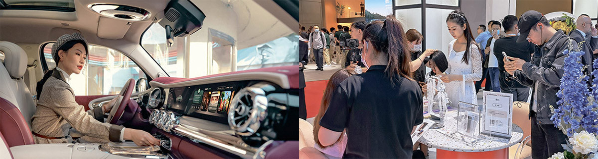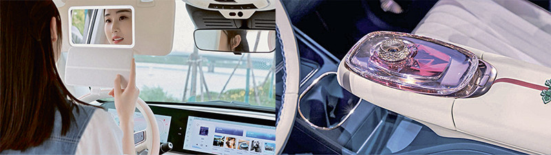 Яркая иллюстрация этой концепции – бренд Ora компании Great Wall. Дизайн ретрохетчбэка Punk Cat отсылает к легендарному «жуку» Beetle, а Lightning Cat напоминает Porsche Panamera. Впрочем, похожи они только внешне: и «начинка», и салон полностью оригинальные, причем со знаком «плюс». Интересно, что бренд целится в женскую аудиторию: на это недвусмысленно намекает провокационный логотип. В Punk Cat есть специальное зеркало со светодиодной подсветкой, встроенная косметичка, селфи-камера и некий режим циклов менструации, разобраться с которым я не смог. Стенд Ora Шанхайского салона был оформлен в свадебной стилистике: стендистки выглядели как невесты, приглашенные парикмахеры и визажисты бесплатно делали посетительницам укладку и макияж, а автомобили, украшенные цветами, навевали воспоминания о поездке на церемонию бракосочетания.