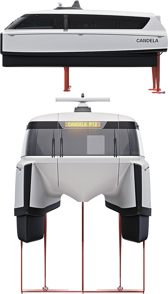 В Стокгольме широко используют водный общественный транспорт: здесь работают около 60 паромов с дизельными двигателями, которые перевозят 1,2 млн пассажиров в год. Чтобы снизить выбросы углекислого газа и уменьшить время поездки, шведский стартап Candela собирается сделать самый быстрый паром в мире. P-12 использует пару электродвигателей и, набрав скорость, поднимается на подводные крылья. Это позволяет развивать до 50 км/ч при 30 пассажирах на борту. Проблема в том, что движение по внутренним водным путям в столице Швеции ограничено семью узлами, а в окрестностях – двенадцатью (22 км/ч). А значит, прежде чем начать эксплуатацию таких судов, придется менять местное законодательство.