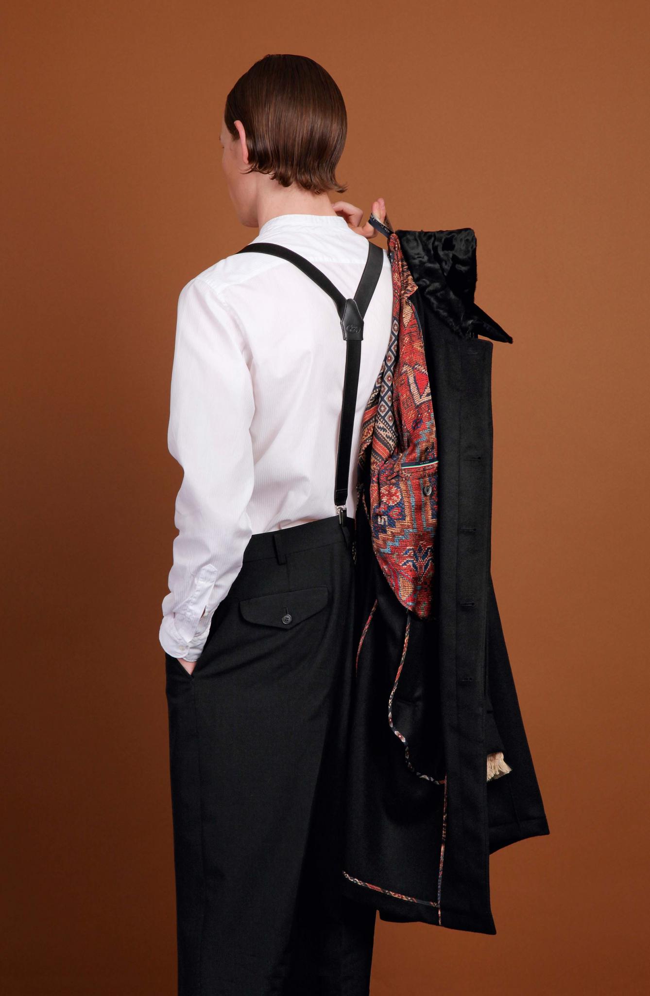 Пальто с пристежным воротником из каракульчи и подкладкой из набивного шелка с орнаментом старинного ковра