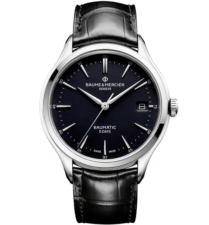 Cамым большим сюрпризом из всех премьер SIHH-2018 стали часы Clion Baumatic компании Baume & Mercier (03) и их новый фирменный автоматический механизм Baumatic BM12.1975A — проще говоря, калибр 1975. Можно было ожидать очередной клон или аналог Eta 2892 или 2824, но 1975-й обладает впечатляющими техническими характеристиками: автоматический завод, пятидневный запас хода, фирменные кремниевые спираль и детали анкерного хода, антимагнитные свойства, пятилетний межсервисный интервал и точность хода на уровне стандартов Швейцарского бюро по сертификации хронометров (COSC). А самое главное, что этот механизм — разработка самой Baume & Mercier, выполненная на фабрике механизмов ValFleurier (как и бренд, принадлежит группе Richemont).