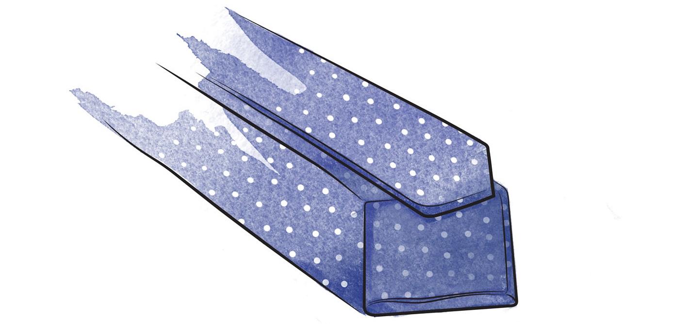 Галстуки сегодня изготовляют одним из двух основных способов — сложением ткани в три или семь слоев. Конструкция не меньше материала влияет на драпировку галстука и форму узла.