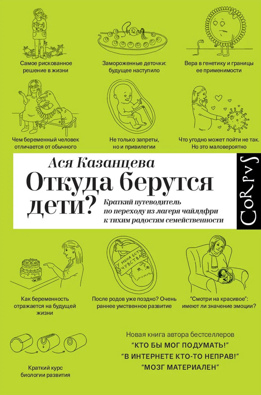 В издательстве Corpus вышла книга научной журналистки (и молодой матери) Аси Казанцевой «Откуда берутся дети? Краткий путеводитель по переходу из лагеря чайлдфри к тихим радостям семейственности». В ней автор рассказывает не только о том, как ребенок наследует гены родителей и что происходит в организме беременной женщины, но и о том, откуда берется желание стать родителем, что может его укрепить, а что — пошатнуть. Forbes Woman публикует отрывок.