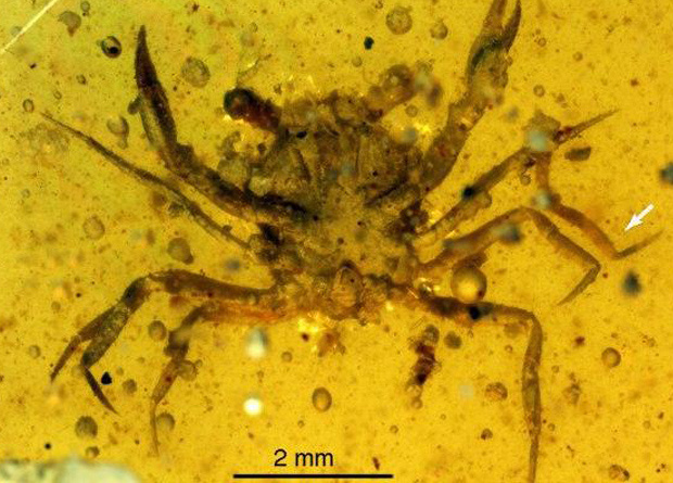 Команде палеонтологов, которую возглавил Хавьер Луке (Javier Luque) из Гарвардского университета, удалось получить новые сведения об эволюции пресноводных и наземных крабов. В центре их внимания оказался кусок бирманского янтаря возрастом 99 миллионов лет из музея в китайской провинции Юньнань. Внутри него ученые обнаружили миниатюрного краба из группы