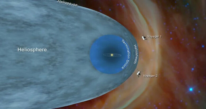 Солнечная система имеет несколько границ, одна из которых, называемая гелиопаузой, определяется солнечным ветром, а точнее его существенным ослаблением. Пространство внутри гелиопаузы — это гелиосфера, а пространство за ее пределами - это межзвездная среда. Но гелиосфера не круглая. Она больше напоминает овал, в котором Солнечная система находится на переднем крае, а за ней тянется некое подобие хвоста.
