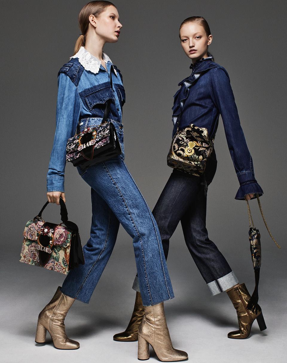 Хлопковая блузка, сумки из хлопка и кожи, расшитые стразами, все Miu Miu; джинсы, 25 000 руб., Magda Butrym; кожаные ботильоны, Tommy Hilfiger.