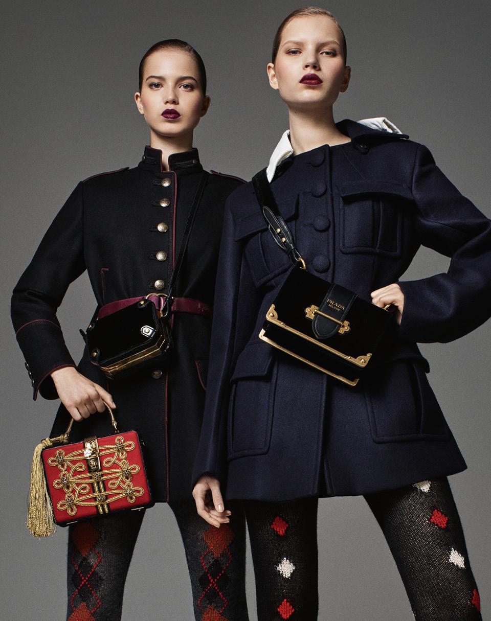 Жакет из кашемира, Fay; шерстяные легинсы, Prada; кожаный пояс, Closed; на поясе сумка из бархата и кожи, 130 000 руб., Etro; в руке сумка Dolce Box из войлока, каракуля и кожи, расшитая золотым шнуром, Dolce & Gabbana.