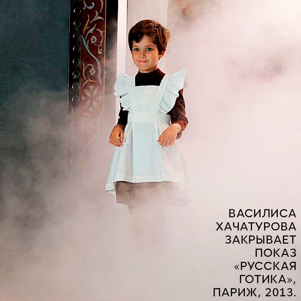 Сейчас моя самая любимая вещь из детства — нелюбимая тогда советская школьная форма. Показ моей коллекции «Русская готика» закрывала дочь Василиса — как раз в похожем школьном платье и белом фартуке. Появление дочки в конце стало очень трогательным моментом: я вспомнила себя в детстве, маленькую девочку перед большим и незнакомым миром. Думаю, во всех кутюрных коллекциях Ulyana Sergeenko есть мотивы, вдохновленные моим советским детством. Будь то перефразированная школьная форма или повседневные платья тех лет. Можно сказать, что начало детской линии Ulyana Sergeenko положила Василиса, потому что первые модели шились именно для нее: дочке так хотелось, чтобы у нее тоже были платья, похожие на те, что носила я.