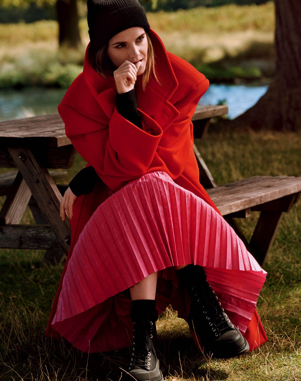 В последние годы Уотсон использует свою славу, чтобы стать женщиной, способной влиять на сердца и умы в самых разных сферах — от равенства полов до устойчивого развития в моде. Она активно поддерживает Good On You — кампанию, призванную информировать покупателей о том, у каких брендов этичное производство. Команда Vogue воспользовалась их приложением, чтобы подобрать вещи для этой съемки в лондонском парке Буши.
