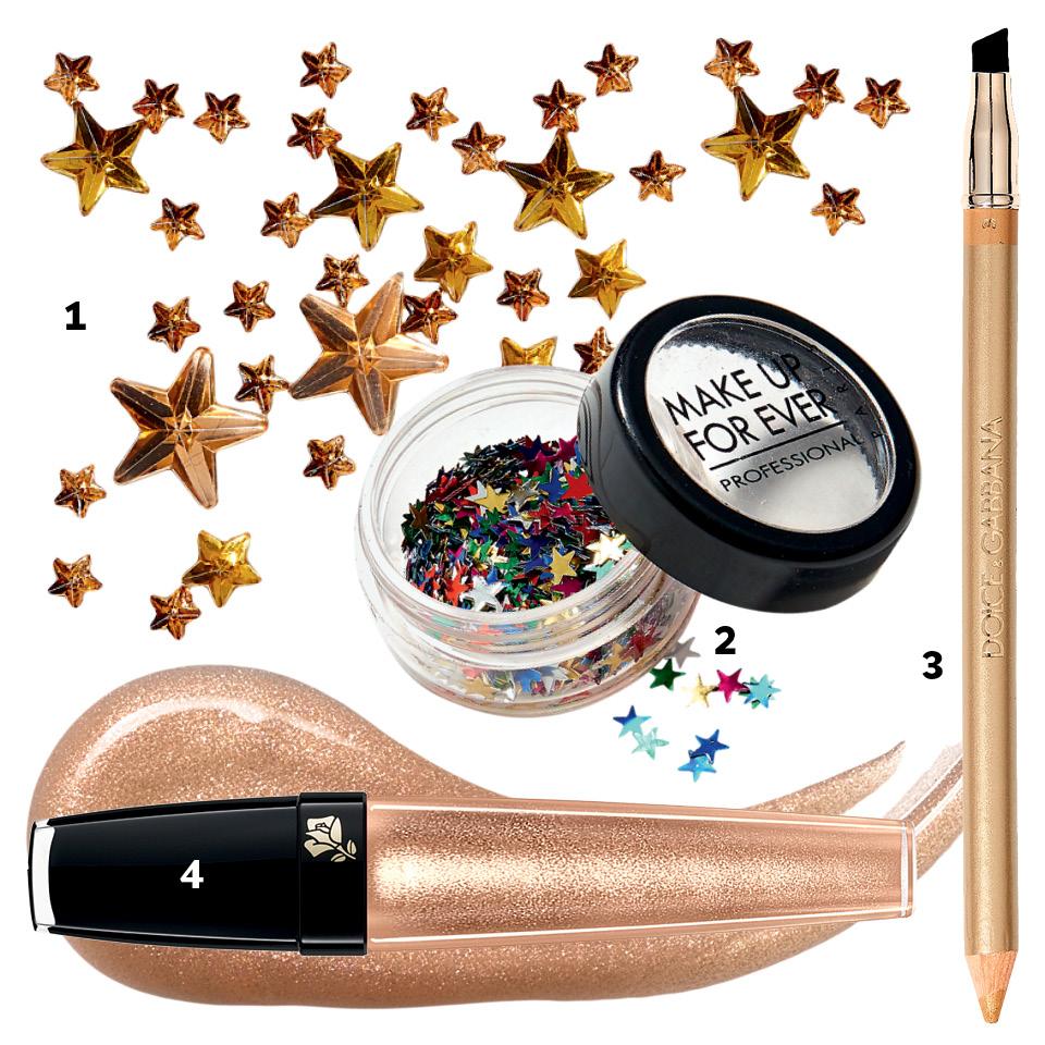 Звездочки на скулах, как на показе Dior в Токио или в рекламе Victoria’s Secret, — модный аксессуар лета. «Чтобы стразы выдержали вечеринку у бассейна, закрепите их клеем для ресниц», — советует Анна Меркушева, ведущий визажист Make Up For Ever.