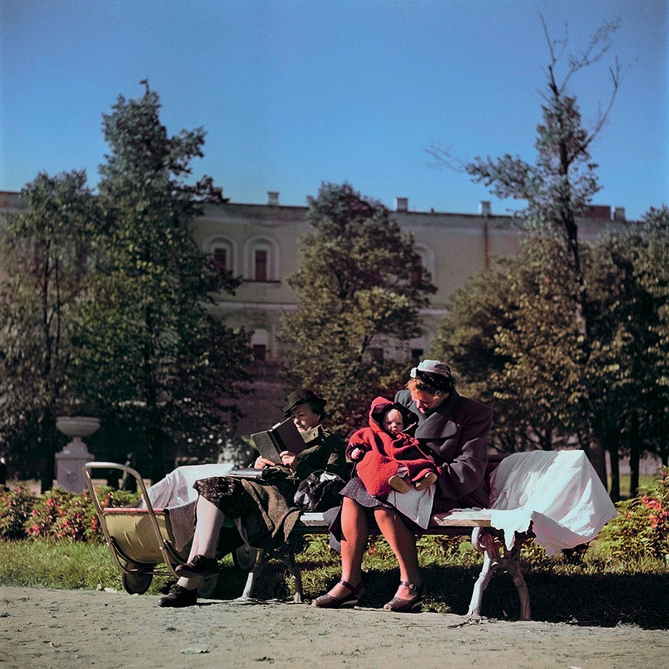 «Это фэшн-съемка глазами журналиста, — куратор выставки Нина Гомиашвили поет дифирамбы итальянцу Фердинандо Шанне. — Ты видишь этих моделей-итальянок, эти шубы, это лето в Ленинграде и понимаешь, что перед тобой съемка для журнала (а на самом деле для рекламы итальянской шубной фабрики), но в ней столько жизни, секса, движения, что кажется, будто никакой постановки и не было. И еще эти зонтики голубые, эта красная синтетическая, как и положено 1980‑м, детская коляска на фоне храма — в общем, невозможно не влюбиться, хочется распечатать все это и повесить на стену. И у Мартина Парра, который в конце 2000‑х снимал Галю Смирнскую на сочинском пляже на фоне гальки и загорающих бабушек, также получаются фотографии невероятной наполненности. Это не постановка. Парр просто останавливается, и мир перед ним начинает кружиться удивительным образом. Они все волшебники, конечно».