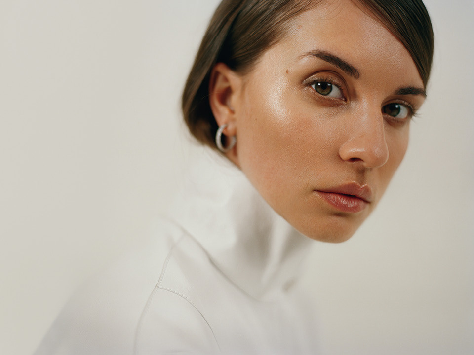 На Ксении: кожаное пальто, Hermès; серьги из белого золота с бриллиантами, Mercury