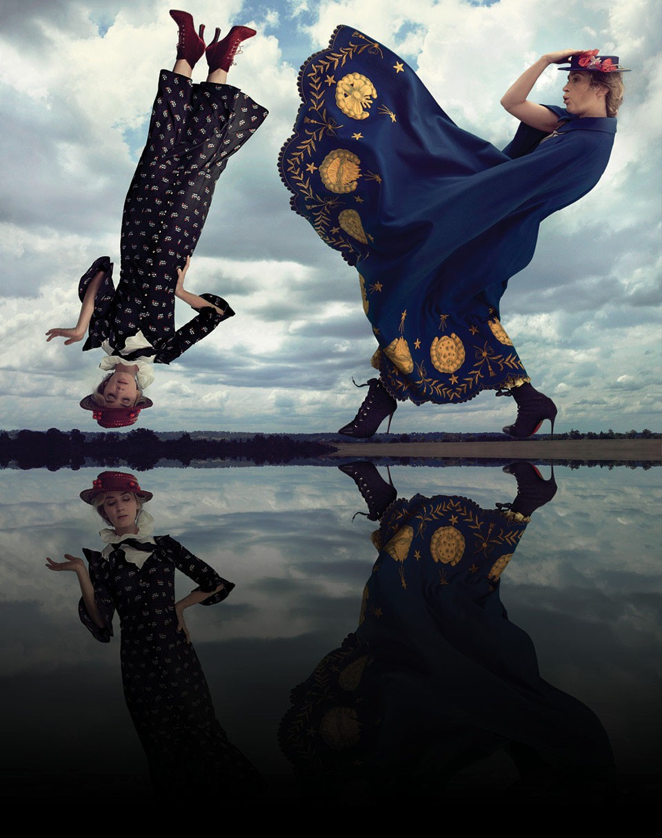 С самого детства (особенно под Новый год с вальсом из «Щелкунчика», шуршанием юбок из тафты и упаковочной бумаги с подарков) мы слышали, что лучшая участь девушки — быть прекрасной принцессой и надеяться на появление принца, а менее везучие будут бегать от волка, спасая корзинку с пирожками. Третьего не дано, думали мы, пока не познакомились с Мэри Поппинс — настоящим профессионалом, самодостаточной женщиной и безусловной иконой стиля. Платья, шляпки, твидовые костюмы, непререкаемый авторитет, едкое чувство юмора, тонкий слух, чудный голос и абсолютная невозмутимость — чтобы выиграть у этой няни конкурс зрительских симпатий, Золушка должна быть хороша и трудолюбива, как наша модель с обложки Крис Грикайте. А настоящая королева, хоть и в атласных