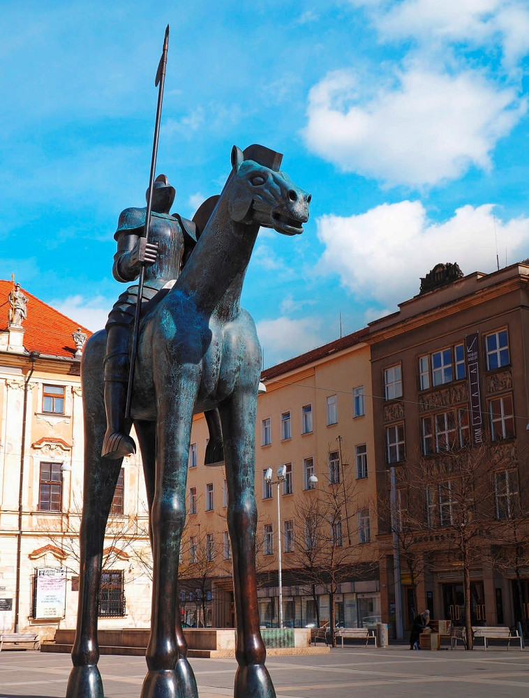 Памятник правителю Моравии и королю Германии Йошту Моравскому скульптора Ярослава Роны был установлен в 2015 году на центральной площади Брно. Если встать под статуей, то кажется, будто между передними ногами лошади находится пенис. Под памятником водят туристические группы и школьные экскурсии.