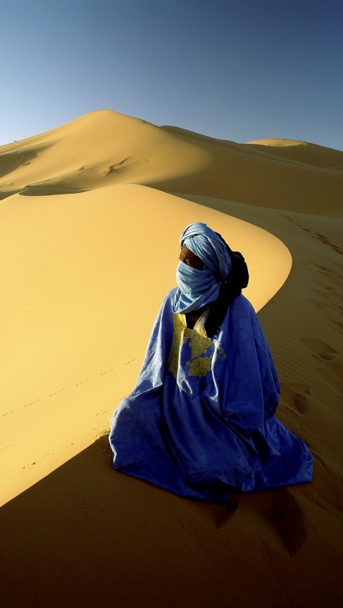 Верблюды ступают неспешно, огибая цепочкой очередной песчаный вал. Мерные широкие шаги Скуби-Ду, служащего мне транспортным средством, создают ощущение качки на волнах. Он поворачивает вслед за флагманом Джимми, а тот — за человеком с веревкой в руке. Одетый в развевающуюся синюю джеллабу, в черном тюрбане, делающем голову раза в три больше, Мустафа уверенно ведет свой маленький флот привычным курсом.