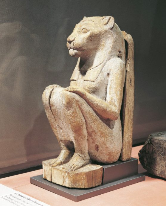В Древнем Египте в виде львов или львиноголовыми изображали множество разных божеств. Академик Михаил Коростовцев подсчитал, что всего на территории страны почитались как минимум 32 бога-льва и 33 богини-львицы. Первая божественная пара во Вселенной — Шу и Тефнут; грозная богиня Сехмет; Баст, которую потом стали изображать с кошачьей головой, и ее сын Махес… Образ царственного и опасного хищника с густой гривой ассоциировался с могуществом богов и фараона, львиные черты были у божеств — носителей разрушительной силы и у связанных с солнцем. В виде сфинксов с телом льва и головой человека изображали царей. Бог солнца Ра в египетском искусстве нередко выглядел как человек с головой льва; два этих зверя, Вчера и Завтра, охраняли его, чтобы каждое утро светило всходило вновь. Египтяне ставили скульптуры львов в качестве стражей гробниц и святилищ.