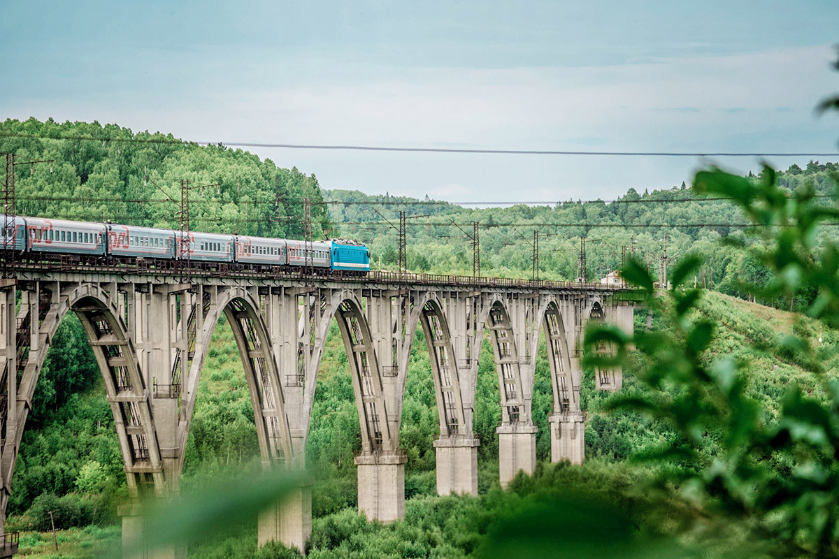 Виадуки Красноуфимского района построили в 1914–1918 гг., чтобы провести южный ход Транссиба от Казани в Екатеринбург через холмистую местность Среднего Урала. У моста через Саранинский лог 11 пролетов, и он до сих пор действующий, хотя для него построен современный дублер.