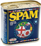 В 1937 году в США появились мясные консервы, названные SPAM по сокращению слов spiced ham — «ветчина со специями». Во время Второй мировой войны их поставляли по ленд-лизу, в частности в СССР. После войны для распродажи этих консервов производитель организовал агрессивную рекламную кампанию, что дало повод спародировать рекламу SPAM в популярном британском телешоу «Летающий цирк Монти Пайтона». В компьютерную эпоху раскрученное слово приобрело значение «навязчивая рекламная рассылка».