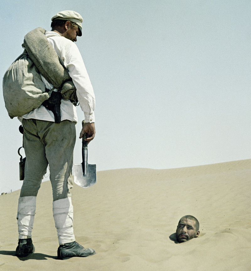 Все зависит от обстоятельств, главным образом, от состава почвы и ее влажности. Подобные эксперименты проводили не раз. В случае с обыкновенным сухим песком многим испытуемым удавалось, интенсивно двигая плечами, освободить сначала одну руку, а затем с ее помощью откопать остальное. В некоторых случаях на это уходило не более нескольких минут. Если рядом закапывали по горло нескольких человек, процесс освобождения проходил быстрее: двигаясь одновременно, закопанные помогали друг другу быстрее «разрыхлить» песок вокруг верхней части тел. Однако если пропитать песок водой, то самостоятельное освободиться уже практически невозможно. Вода заполняет пустоты, делает песок более тяжелым. Человек чувствует себя так, будто его залили бетоном, и не может пошевелиться. То же самое касается и обычной плотной земли: если она не рыхлая, а утрамбованная, скорее всего, без посторонней помощи закопанный человек не освободится. Ранее существовал такой вид казни. Преступника закапывали по горло, тщательно утаптывали землю вокруг и не позволяли никому из сердобольных прохожих кормить и поить осужденного. Например, в России таким образом наказывали в XVII–XVIII веках, и преимущественно женщин, убивших собственных мужей. В Соборном уложении 1649 года говорится: «…жена учинит мужу своему убийство или окормит его отравою, за то ее казнити – живую окопати в землю, покамест она умрет».