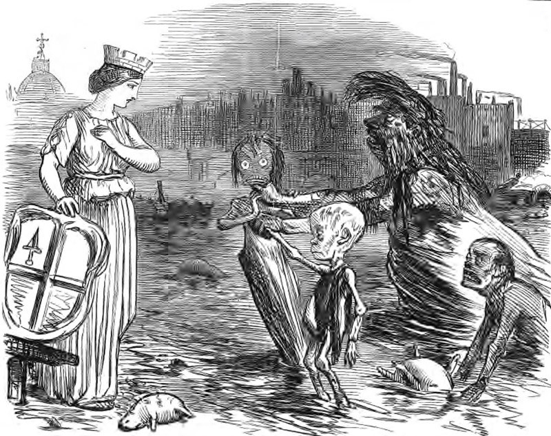 К началу XIX века Лондон – один из самых крупных и густонаселенных городов мира. В 1801 году в нем проживало свыше миллиона человек, а к середине столетия это число увеличилось более чем в два раза. Соответственно увеличивался и объем отходов, которые жители столицы ежедневно сливали на улицы и в сточные ямы. Из-за антисанитарии и скученности свирепствовали болезни, особенно страдали от этого бедные кварталы. В 1830 году в британской столице только каждый второй ребенок доживал до пяти лет, и это еще до первой масштабной лондонской эпидемии холеры, случившейся в 1832-м. Новая для Европы начала XIX века болезнь, завезенная из Индии, стала страшным бедствием. Холера охватывала целые районы, в каждую из эпидемий от нее мучительно умирали тысячи лондонцев. Никто тогда не знал, отчего эта болезнь возникает и как передается. Люди, не чуждые науке, искали объяснение исходя из древнегреческой теории миазмов. Согласно ей причина многих болезней – воздух, зараженный ядовитыми частицами. Многие районы Лондона действительно так «благоухали» экскрементами и гнилью, что назвать здоровым воздух было никак нельзя. На самом деле вонь сигнализировала о настоящем источнике опасности – зараженной воде, которую пили жители города.