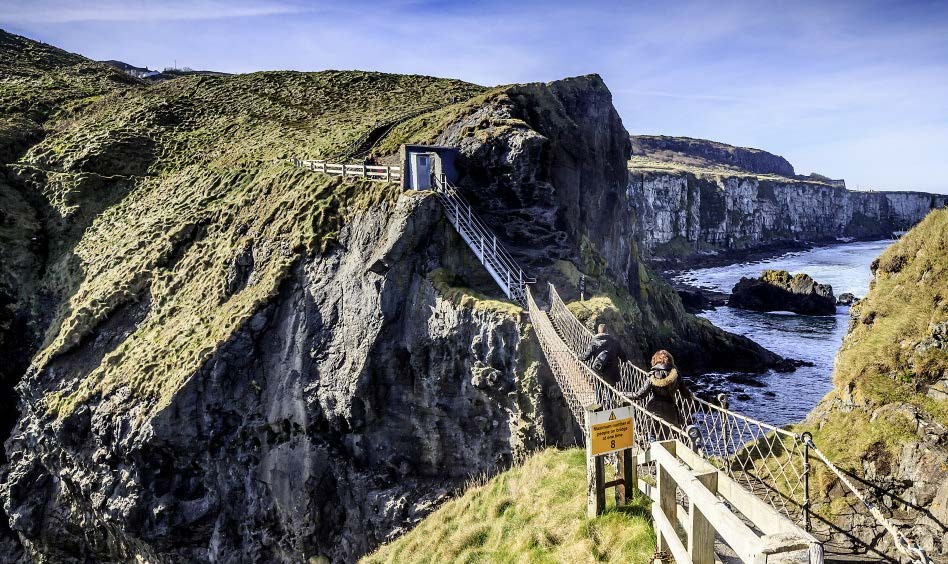 Веревочный мост Кэррик-э-Рид в Северной Ирландии соединяет Большую землю с островком Каррикарид. Он растянут на высоте 30 метров и качается от малейшего дуновения ветра. Первый мост на этом месте был построен рыбаками. Нынешний, из ели, сделан крупной компанией и обошелся в 16 000 фунтов.