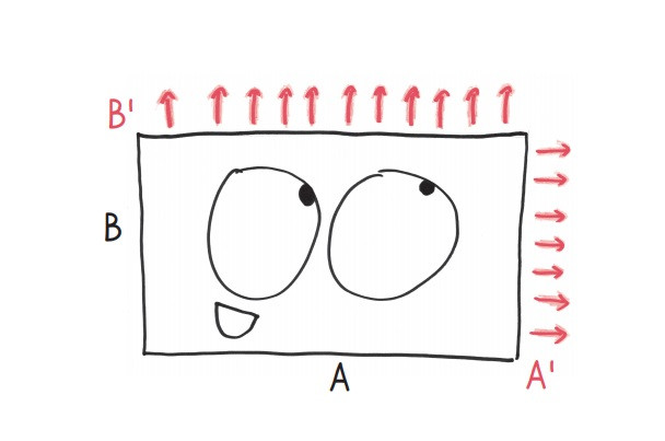Это математический анализ, то есть мы размышляем об отдельно взятом моменте. В это летучее мгновение ширина увеличивается на бесконечно малую величину (которую мы можем назвать dA или А´), и длина делает то же самое (соответственно, при этом получается dB или В´).
