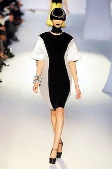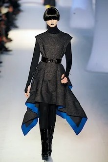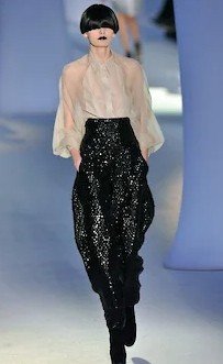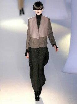 Одна из самых знаменитых коллекций Yves Saint Laurent времен Стефано Пилати, осень-зима 2008, как раз и была таким реваншем. Очень структурная, построенная в четких линиях, даже жесткая — и эта жесткость подчеркивалась черными губами моделей и одинаковыми черными париками, закрывавшими челками глаза (а в некоторых случаях еще и узкими черными очками),— в рецензиях писали тогда, что по подиуму шли «футуристические женщины-автоматы». Вся коллекция была устроена вокруг жакетов самого сложного кроя, и тут Пилати показал все свои профессиональные навыки и умения, свой класс в том числе в tailoring, благодаря которому после Yves Saint Laurent его пригласили в Ermenegildo Zegna делать мужские кутюрные коллекции.