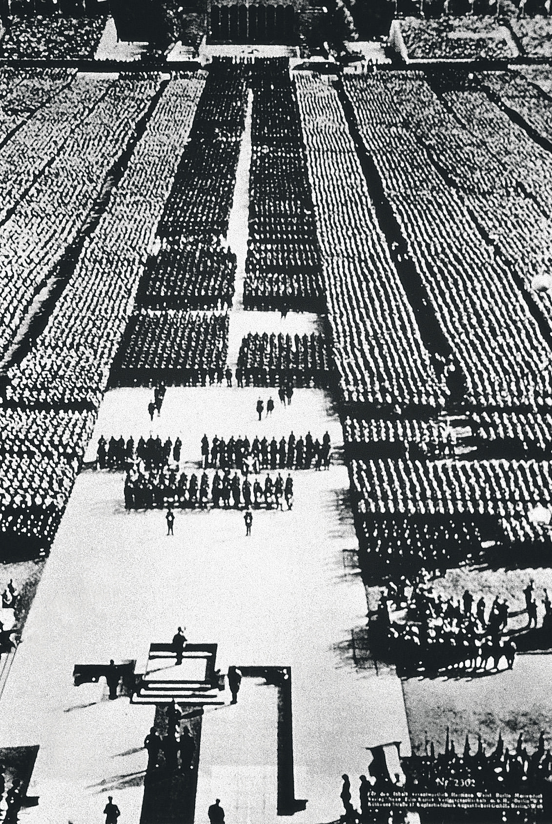 Фильм не о войне, но фильм-война, фильм-пропаганда, фильм-ритуал, самый, наверное, важный документальный фильм в истории кино. «Триумф воли» был снят по заказу Гитлера, посвящен съезду НСДАП в Нюрнберге в 1934 году, и если искать хоть сколько-то подходящий этому фильму эпитет, это будет слово «грандиозный». Грандиозные съемки, грандиозное воздействие, грандиозная опасность. Это «аффективное кино», в котором все — лидеры, небо, знамена, дети и взрослые, приветствующие вождя,— лишь лубок, персонажи гигантского мифа о новом мире, новой силе и новом будущем. Лени Рифеншталь искренне наслаждается этой симфонией власти. Она монтирует фильм так, чтобы он «с каждым новым впечатлением все сильнее потрясал бы», но отказывается считать его пропагандистским. «Триумф воли» — это Гитлер, увиденный самой Германией 1934 года: не в силах перенести сияния новой вселенной, Германия закрывает глаза.