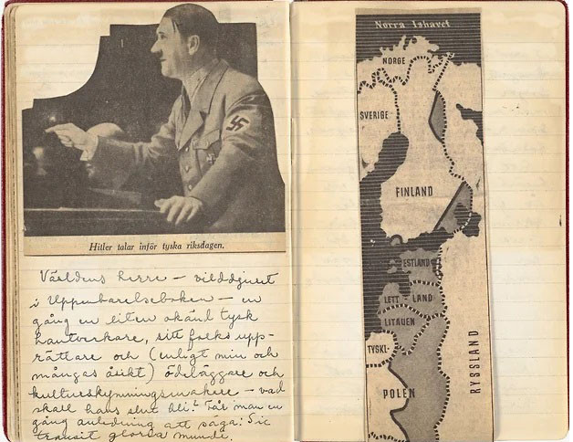 Узнав о начале войны, Линдгрен завела дневник. В десятках толстых тетрадей — скрупулезно собираемые вести с фронтов, коллажи из газетных вырезок, описания шведского быта, размышления о судьбе человечества — летопись жизни в окруженной войной стране. Прежде политика почти не интересовала Линдгрен, но теперь от нее некуда было деться: Германия, писала она в дневнике, «подобна чудовищу, которое регулярно выходит из ада в поисках новых жертв»; Советский Союз, зверствовавший в Финляндии, пугал не меньше: «Хуже всего, что нельзя надеяться на поражение Германии. Слабая Германия может означать для нас только одно — мы станем добычей России». «Национал-социализм и большевизм — это как два динозавра, схватившиеся друг с другом». В 1940 году Линдгрен поступила на службу в отдел перлюстрации почтовой службы Стокгольма, и к новостям из газет добавились сотни свидетельств об ужасах войны из частных писем: загнанные в гетто евреи, голод, разлученные семьи, потерянные дети. Ко всему прочему зимой 1941 года Карин заболела пневмонией — сидя у постели дочери, Линдгрен рассказывала ей истории о победе добра над злом, о том, как быть сильным, даже если ты маленький. Главной героиней этих историй была девочка Пеппи.