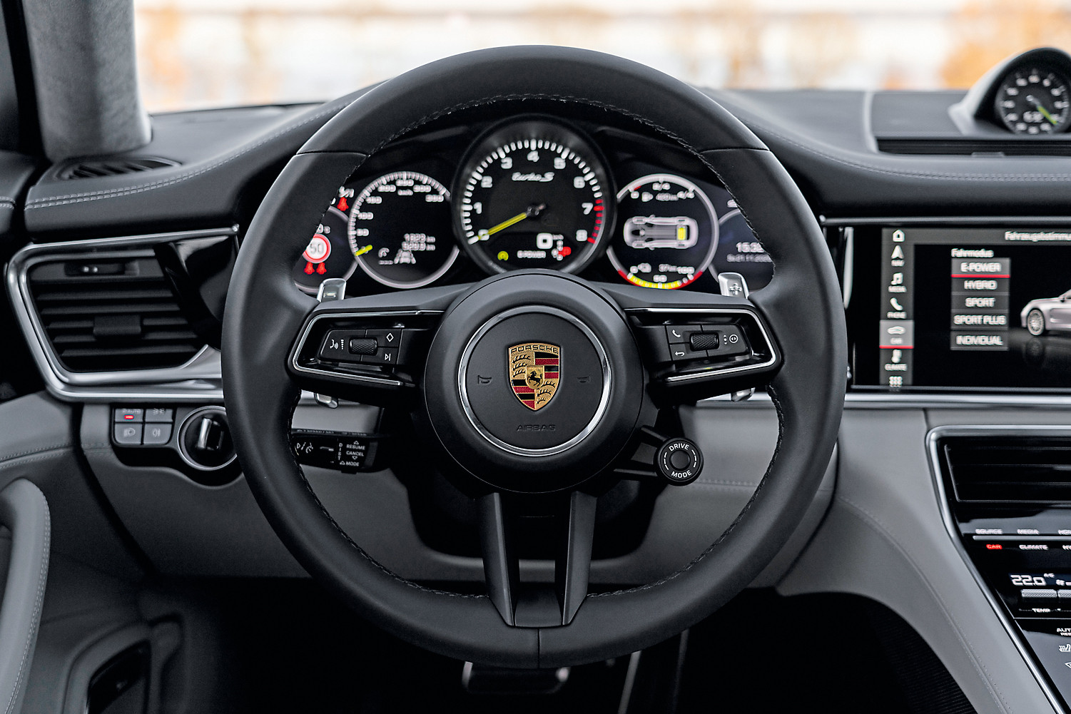 Для плагин-гибрида Panamera обладает неплохими показателями запаса хода на аккумуляторной батарее. Максимальная скорость, которую можно выжать на одном лишь электромоторе,— 140 км/ч, но, конечно, электродвигатель чаще используется в так называемом городском цикле, где средняя скорость колеблется около 45 км/ч, и вот в таком режиме автомобиль может проехать, не спалив ни единой капли бензина, до 50 км. То есть в хорошую теплую погоду и без пробок городской житель сможет доехать от дома до работы и обратно на одной зарядке. А вернувшись, вновь подключить автомобиль к розетке.