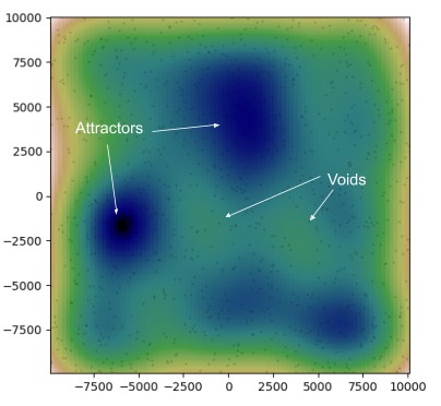 По своей сути Randonautica — это обычный чат-бот. Он запрашивает данные о местоположении пользователя и просит его сконцентрироваться на том, чего он ждет от прогулки. С помощью генератора случайных чисел программа разбрасывает на карту точки в радиусе 3 км, а затем анализирует получившийся ландшафт, выявляя пространства скопления точек или их отсутствия. Центр скопления называется «аттрактор», центр пустоты — «войд», еще есть «аномалия» — это самый выдающийся аттрактор или войд, точка, расположенная в самом большом скоплении или на самом большом удалении от других точек. Тип точки — аттрактор, войд или аномалия — выбирает пользователь, программа в ответ выдает ему координаты.