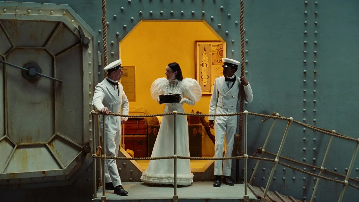 И вот перед нами — прекрасная Белла Бакстер, женщина с мозгом младенца, развивающаяся с невероятной скоростью. Годвина она зовет просто Год, то есть Бог; в русском переводе романа шотландца Аласдера Грея, по которому снят фильм, его звали Боглоу. Белла радостно носится по своему идеальному детскому саду, Бог читает ей на ночь сказки, по дому бегают диковинные животные — куросвиньи и собаки с гусиными головами, вместо игрушек у нее — трупы, которые можно тыкать скальпелем. Белла согласится выйти замуж за ассистента Бога, но сначала решит посмотреть мир с пронырой-юристом. По дороге она выяснит, что единственное, чего хотят и мужчины и женщины,— это ограничить свободу других мужчин и женщин.