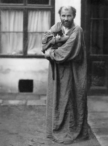 Густав Климт держал в мастерской в разное время от восьми до десяти кошек, которых он рисовал, натренировав их застывать в нужной позе. Его приятель, критик Артур Рёсслер, вспоминал, как зашел в мастерскую и был поражен не только количеством кошек, но и тем, что они спокойно бегали по работам. На вопрос Рёсслера, почему он позволяет кошкам такую свободу, Климт ответил: «Даже если они помнут или разорвут несколько работ, ничего страшного, зато они ссут на все картины, а их моча, всем известно, лучший фиксатор краски». Однако ни одной картины с кошкой Климт так и не написал, а его кошачьи эскизы не сохранились — в отличие от кошачьих следов на полотнах: во время подготовки выставки Климта в Нью-Йорке в 2018 году сотрудники музея обнаружили на картине из частной коллекции странный отпечаток, который после исследования оказался следом кошачьей лапы.