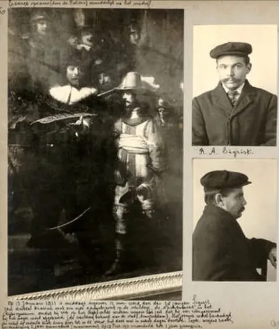 13 января 1911 года уволенный со службы повар военно-морского флота Нидерландов Рулоф Антон Сигрист пришел в Рейксмюсеум и нанес удар обувным ножом по картине «Ночной дозор». Его задержали прямо в зале музея, при допросе он заявил, что у него есть претензии к правительству Нидерландов и мотивом была месть, но за что конкретно, он объяснить не смог. Сигриста приговорили к году тюрьмы. Реставрация картине практически не понадобилась — в то время она была покрыта плотным слоем лака и короткое лезвие ножа смогло лишь оставить царапину на нем, не задев живописный слой.