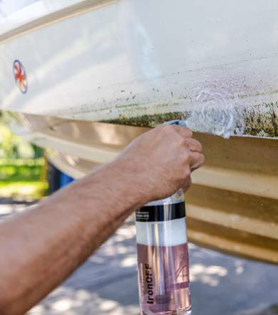 Итак, в первую очередь следует провести очистку корпуса и корпусных конструкций с последующим покрытием защитным составом. Такая очистка отличается от той, что проводят при регулярном уходе за яхтой, и состоит из трех фаз: удаления на корпусе черного налета от копоти, желтизны от водной среды и металлических вкраплений. При этом вместо сильных кислотных средств мы применяем наши фирменные составы минеральных химических продуктов, которые не вредят ни рукам, ни глазам, ни, соответственно, корпусу.