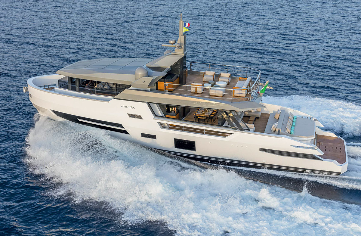 Показанная в Монако моторная яхта Mabelle — это четвертый корпус проекта Sherpa 80XL, в 2019 году получившего приз World Yachts Trophies в номинации Best Innovation. Яхту, которую спустили на воду этим летом, заказала итальянская семья с большим опытом хождения под парусом: в разное время они владели несколькими парусными лодками длиной от 33 до 58 м. Но, достигнув определенного возраста и, вероятно, начав испытывать затруднения с управлением парусами, яхтсмены стали интересоваться яхтами моторными. Рассмотрев предложения лодок длиной до 25–30 м, которые управляются небольшим экипажем, приняв во внимание приличное обитаемое пространство, возможность кастомизации и особенности экстерьера, они выбрали Arcadia Sherpa 80XL.