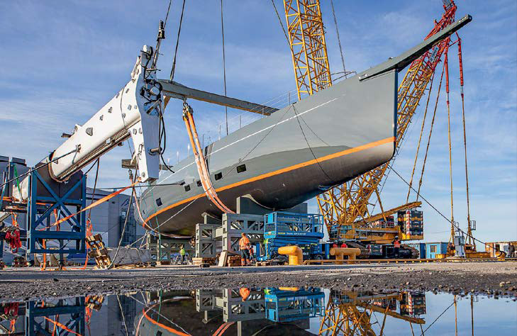 Процесс формирования спецификации занял около 9 месяцев. Контракт с верфью был подписан в конце 2018 года; в начале января 2019‑го заложили матрицу, а на воду корпус был торжественно спущен 5 мая 2021 года. Слаженная и профессиональная работа большой команды обеспечила сдачу яхты на неделю раньше срока — уникальный случай в нашей индустрии.