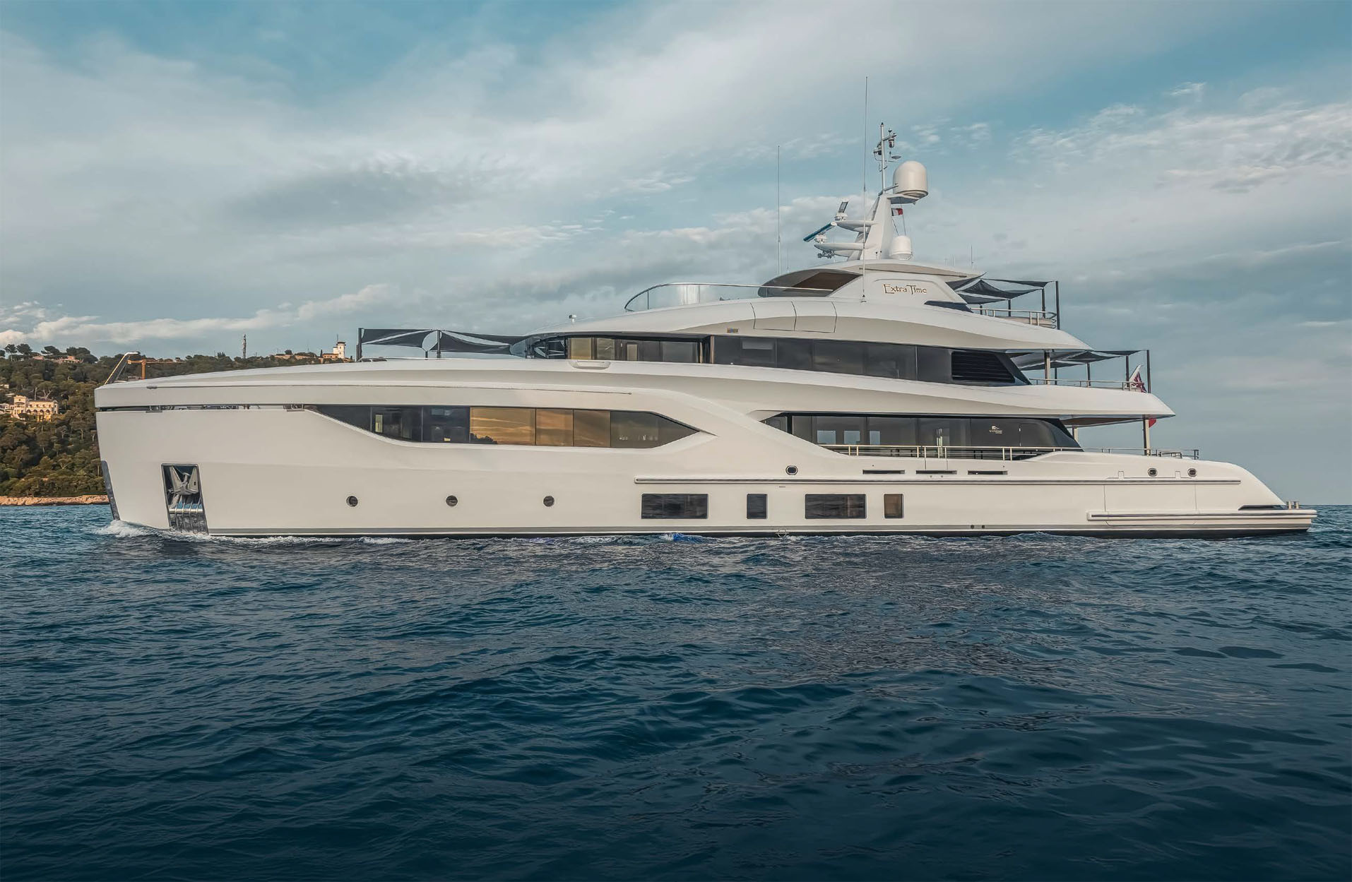 Extra Time, переданная владельцу в апреле 2024 года, во многом схожа с Ace, так как над проектом работал тот же международный коллектив из Diana Yacht Design (Нидерланды), Reymond Langton Design (Великобритания) и M2Atelier (Италия), разработавший инженерную часть, экстерьер и интерьер соответственно. Однако интерьер, а значит, и задумка владельца, у Extra Time совсем другие. Дизайнеры из M2Atelier утверждают, что обратились за вдохновением к нескольким современным нью-йоркским пентхаусам. Этот стиль все, в том числе резиденты самих пентхаусов, понимают по-своему, но основные его составляющие, например панорамные окна и лаконичная мебель, как правило, прекрасно вписываются в пространство суперъяхты. В частности поэтому мы поспешили на борт Extra Time