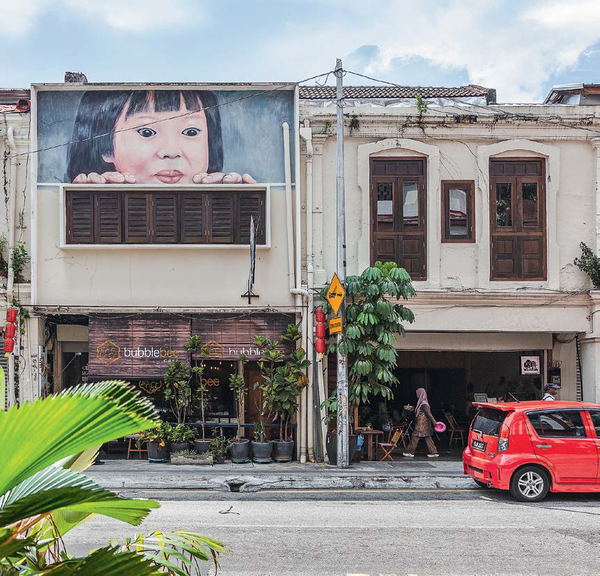 Туристы в Джорджтауне охотятся за cтрит-артом, шагают по карте, начиная прогулку от самого известного под названием «Маленькие дети на велосипеде» авторства Эрнеста Захаревича, и ищут новые картинки на стенах и инсталляции из стальных прутьев, рассказывающие о культуре Пенанга. За туристами охотятся велорикши, которые настойчиво предлагают сделать круг почета по старому центру.