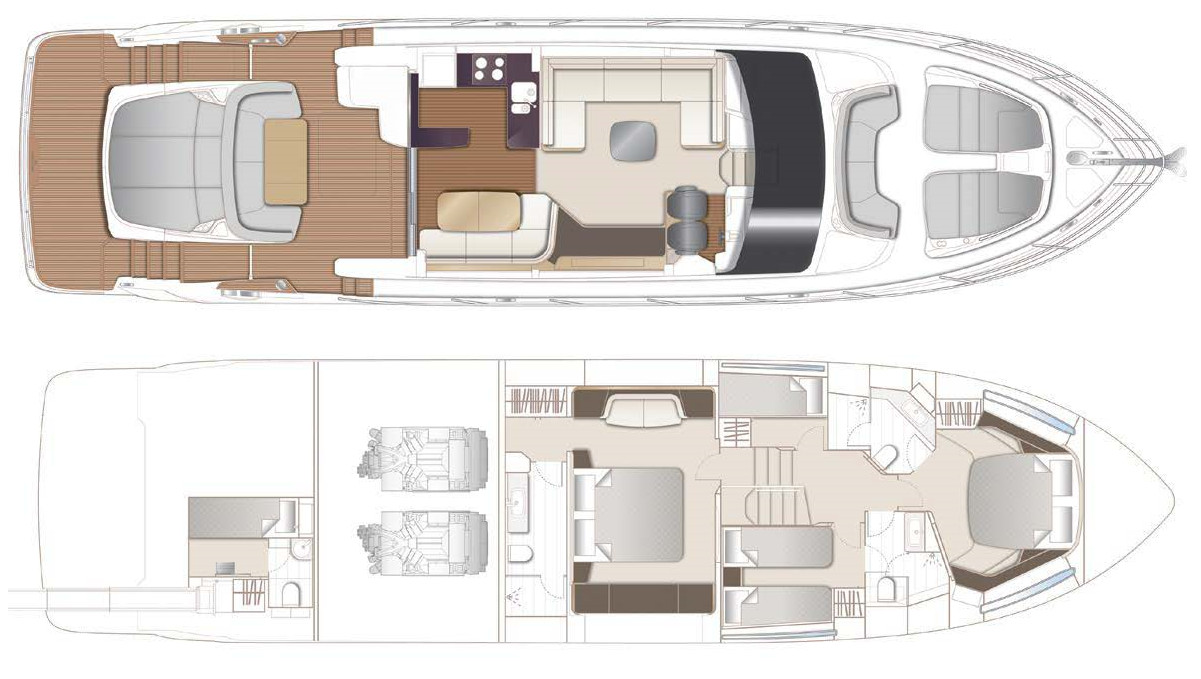 На сегодня Princess V65 занимает позиции флагмана V Class. Следует сказать, что это третья модель, созданная на новой платформе длиной 65 футов, — наряду с флайбриджной Princess F65 и Princess S65 со спортбриджем.