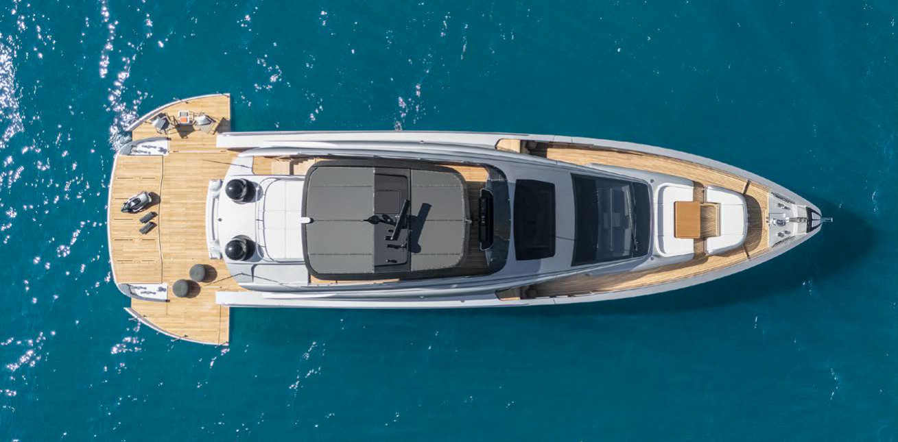 Pershing GTX80 стал второй моделью в серии Pershing GTX, куда до недавнего времени входил только Pershing GTX116. В его создании принимали участие сотрудники Комитета по продуктовой стратегии Ferretti Group во главе с Пьеро Феррари, инженерного подразделения Ferretti Group и Vallicelli Design. Тем, кому последнее название покажется новым, скажу, что студия Vallicelli Design уже почти полвека разрабатывает проекты для таких верфей, как Fincantieri, Oceanco, Turquoise, ISA, CRN.