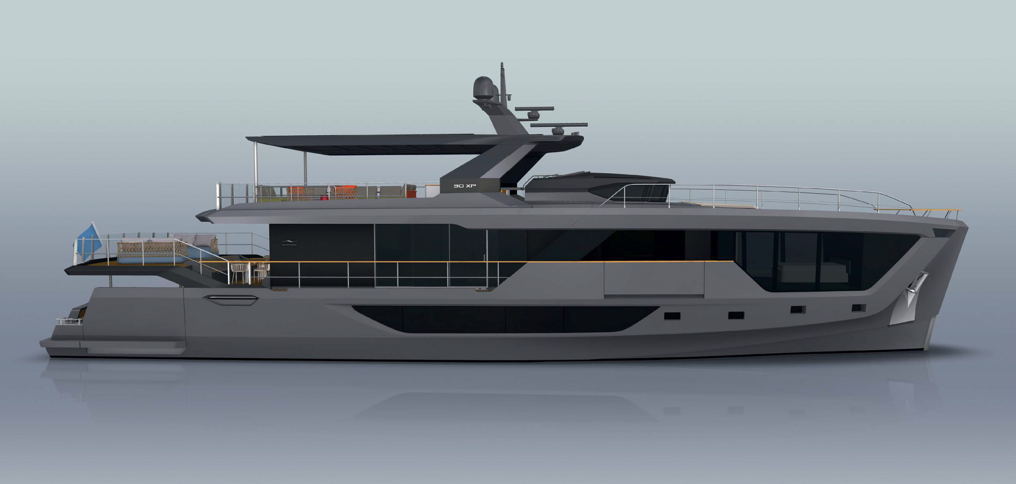 Numarine — это верфь-бутик с объемом выпуска до 15 лодок в год. Еще недавно там строили яхты типа Hardtop и Flybridge, но сейчас производят только экспедиционные модели линейки XP: 22XP и 26XP из стеклопластика, а также стальные 32XP и 37XP. Новая Numarine 30XP из стеклопластикового композита займет в модельном ряду центральную позицию.