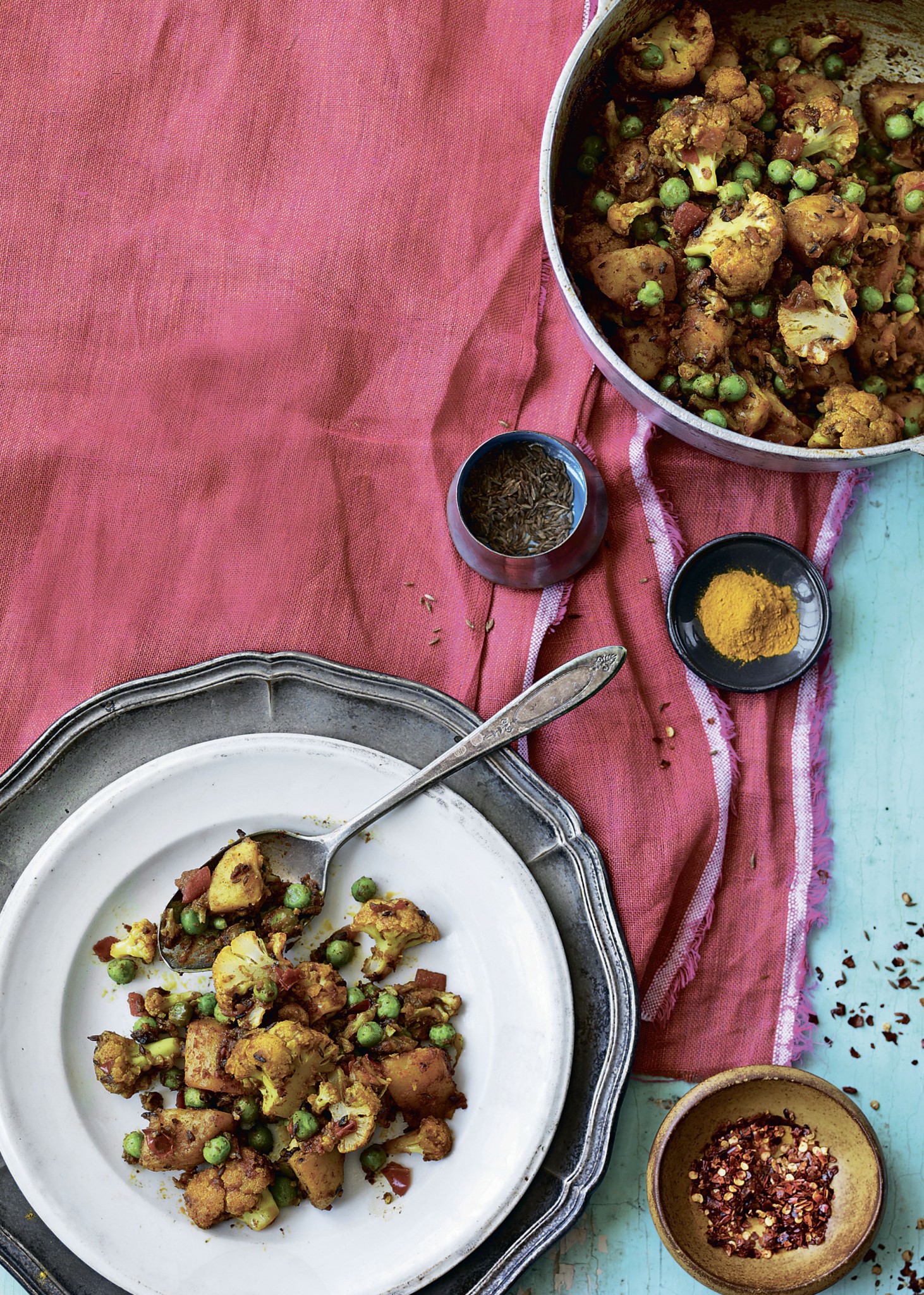 В моей кладовой появился новый субконтинент — полка, гнущаяся под весом специй, необходимых для приготовления настоящих индийских блюд. Некоторые её обитатели знакомы мне давно: кориандр, кумин, кайенский перец, семена горчицы, палочки корицы и головки чеснока. С ними соседствуют таинственные незнакомцы: асафетида, чёрный кардамон, пажитник, манговая пудра, куркума, тамаринд. Эти названия сами по себе поэзия, но их запах и вкус — особенно после помола и обжарки в кипящем масле — просто чистая магия, которая создаёт на моей кухне картинку Индии, куда более заманчивую, чем рисуют болливудские фильмы.