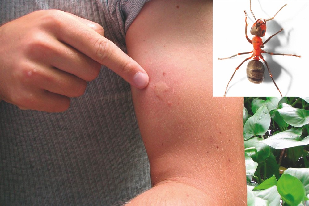 Даже в средней полосе встречаются совершенно разные муравьи – от мелких «садовых» до крупных «лесных». Но самый незаметный малыш кусается достаточно болезненно. Впрыскивая под кожу кислоту, обидчик вызывает сильное жжение, напоминающее ожог от крапивы. Последствия тоже похожи – на месте укуса возникает плотное белое уплотнение, вокруг которого появляется покраснение кожи. Чтобы избавиться от неприятных ощущений, можно помазать место укуса гидрокортизоновой мазью.